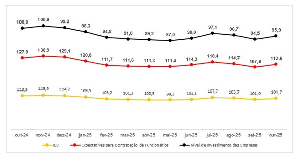 Apesar do crescimento em relação a setembro, na comparação com o mesmo período do ano passado, o índice recuou 13,4%. Segundo a FecomercioSP, a alta do indicador é um reflexo do típico otimismo que antecede as festas de fim de ano. Assim, o resultado de outubro deve ser interpretado com cautela: a recuperação mais consistente da confiança depende de um ambiente econômico mais favorável, com redução da taxa de juros, melhoria do consumo e recuperação das condições financeiras das empresas.