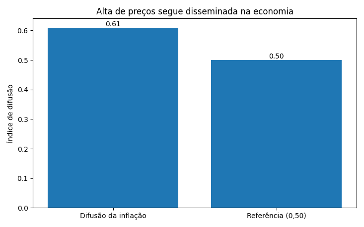 Além disso, o índice de difusão — que mede a proporção de itens com aumento de preços —ficou em 0,61, indicando que a alta segue relativamente espalhada pela cesta de consumo.