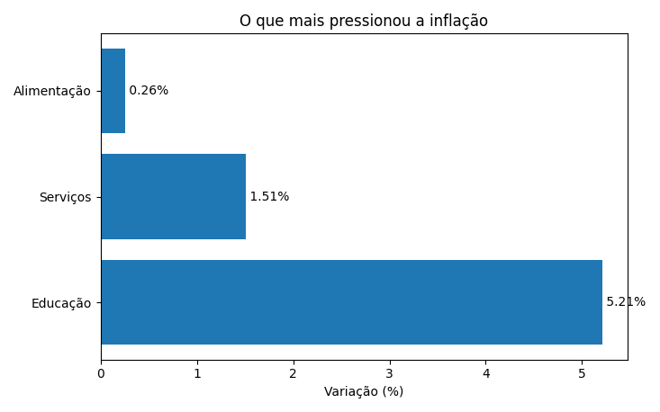 Embora parte da alta recente tenha componentes sazonais, como no caso da Educação, o conjunto dos dados indica que a inflação ainda apresenta resistência, sobretudo no setor de Serviços.