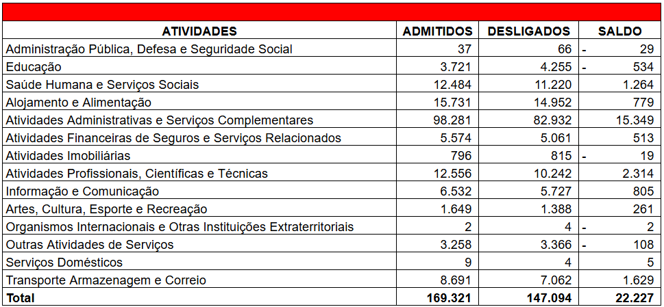 Movimentação do Emprego Celetista no Setor de Serviços do Estado de São Paulo