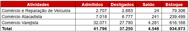 Movimentação do Emprego Celetista no Setor do Comércio do Estado de São Paulo