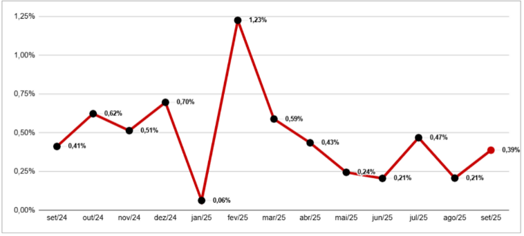 Habitação registrou as maiores variações também, em que as classes D e E foram as mais afetadas, com 2,91% e 2,69%, respectivamente. Já na classe A, a alta foi de 1,62%, com maior peso na renda. No período compreendido entre outubro de 2024 e setembro de 2025, nota-se um incremento acumulado de 7,92%; neste ano, a alta é de 8,35%.
