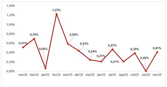 Para a Federação, apesar da alta pontual em novembro, o CVCS apresenta trajetória de arrefecimento quando observados os últimos 12 meses. As elevações registradas em novembro não têm origem estrutural, mas sazonal, o que aponta para uma perspectiva mais favorável no longo prazo.