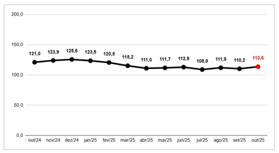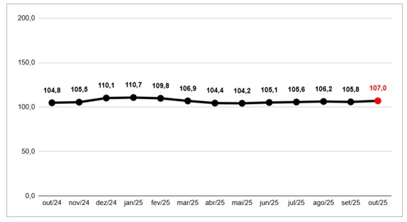 Na análise por faixa de renda, as famílias com até dez salários mínimos registraram alta de 1,1%, alcançando 105,1 pontos, e crescimento de 5,1% na comparação anual, estimulado pela desaceleração da inflação. Já entre os lares com renda superior a dez salários mínimos, o indicador subiu 1,2%, para 112,4 pontos, mas apresentou queda de 5,1% em comparação com o mesmo período do ano anterior — refletindo a maior sensibilidade dessa faixa às condições macroeconômicas, como incertezas fiscais e volatilidade internacional.