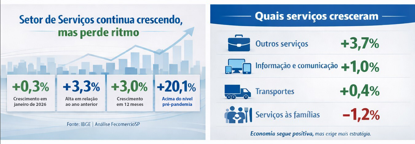 18/03/2026Serviços seguem em crescimento, mas ritmo menor exige atenção das empresas