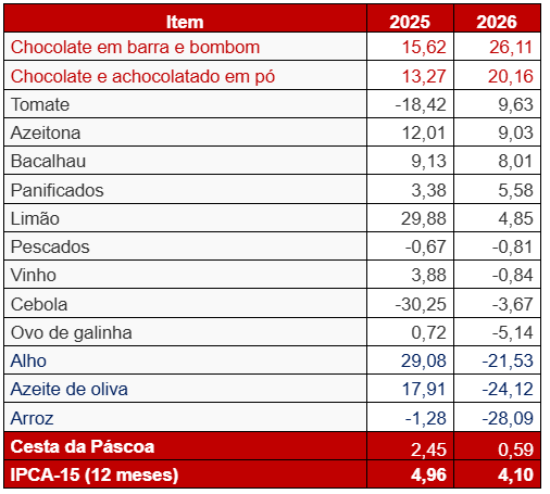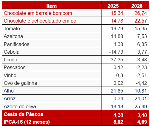 Inflação da Cesta da Páscoa (2025–2026)