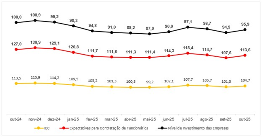 Apesar do crescimento em relação a setembro, na comparação com o mesmo período do ano passado, o índice recuou 13,4%. Segundo a FecomercioSP, a alta do indicador é um reflexo do típico otimismo que antecede as festas de fim de ano. Assim, o resultado de outubro deve ser interpretado com cautela: a recuperação mais consistente da confiança depende de um ambiente econômico mais favorável, com redução da taxa de juros, melhoria do consumo e recuperação das condições financeiras das empresas.