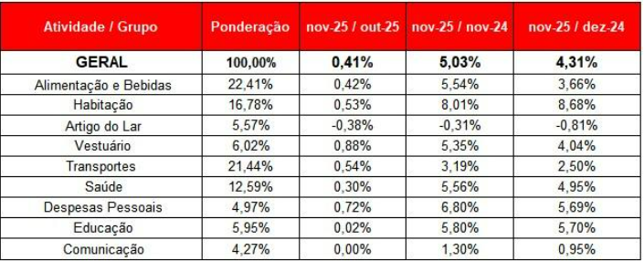 Custo de vida na Região Metropolitana de São Paulo — novembro de 2025