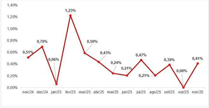 Para a Federação, apesar da alta pontual em novembro, o CVCS apresenta trajetória de arrefecimento quando observados os últimos 12 meses. As elevações registradas em novembro não têm origem estrutural, mas sazonal, o que aponta para uma perspectiva mais favorável no longo prazo.