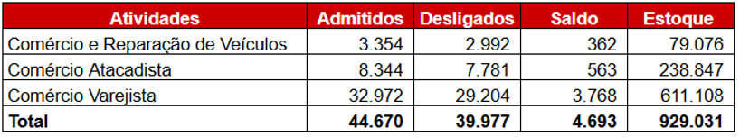 Movimentação do Emprego Celetista no Comércio do Estado de São Paulo