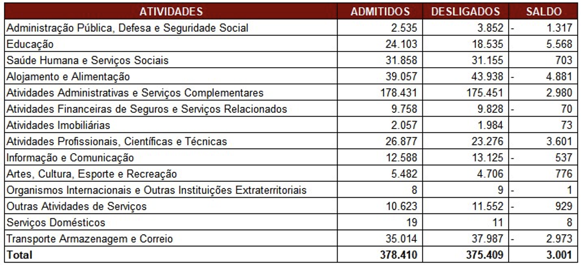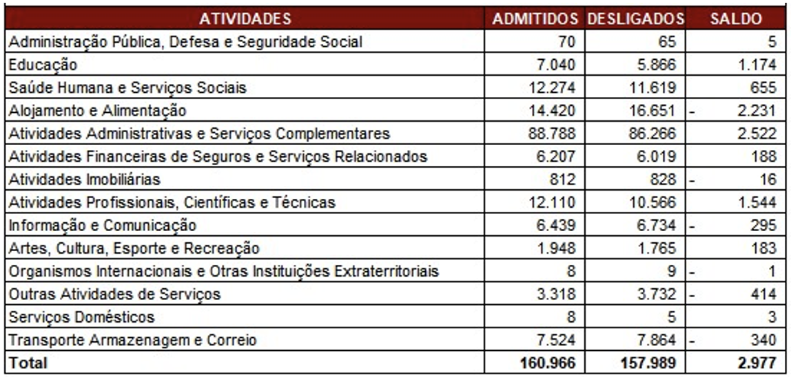 Os segmentos que mostraram maior geração líquida de empregos em janeiro se concentraram nos serviços corporativos, educação e atividades profissionais, enquanto os ligados ao consumo presencial e à logística apresentaram ajustes negativos [tabela 1].
