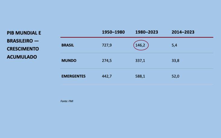A economia brasileira não chegou a um processo constante de perda de dinamismo à toa. Desde 1980, o País vem ficando para trás em relação ao crescimento mundial, abrindo mão das boas estratégias de competitividade. “Se, de 1980 para cá, estivéssemos acompanhando o ritmo de crescimento do mundo, teríamos hoje um PIB [Produto Interno Bruto] 77,5% maior. Isso significa que a renda média do brasileiro, os lucros e os recursos para programas sociais também seriam maiores na mesma magnitude. Estamos perdendo o ‘bonde’ do crescimento econômico, essa é a realidade triste da nossa economia”, adverte o economista Antonio Lanzana, presidente do Conselho Superior de Economia, Sociologia e Política, da Federação do Comércio de Bens, Serviços e Turismo do Estado de São Paulo (FecomercioSP).