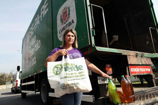 A cada quatro quilos de materiais entregues, cada pessoa ganha um quilo de frutas e verduras